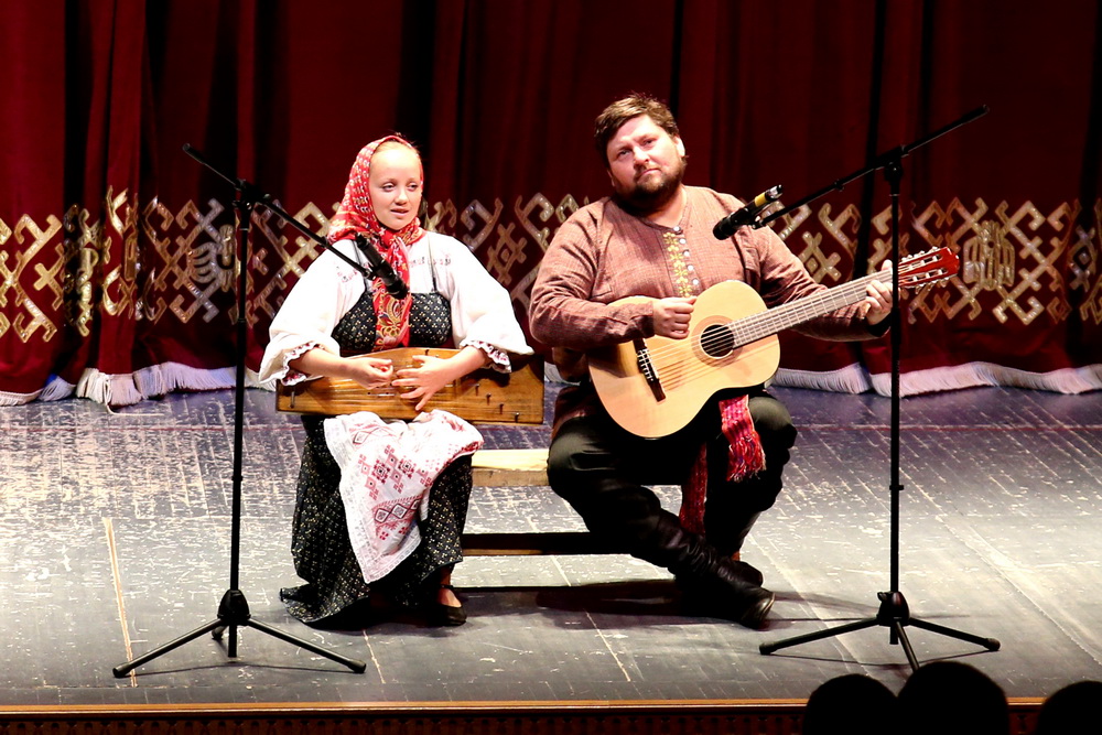 С музыкальным приветствием выступили гости церемонии – Мусатовы Надежда и Алексей из Егвинского сельского культурно-досугового центра (Кудымкарский муниципальный район). Этих исполнителей тоже можно назвать ярким проектом, расширяющим границы округа и коми-пермяцких песен, поскольку в последнее время они достойно представляют наш округ на многих конкурсах и фестивалях народного творчества.