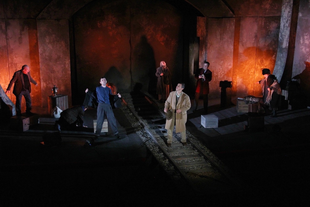 Всё сценографическое пространство решено как закрытый цементный тоннель, вход в который контролируется то ли высшими силами, то ли еще кем-то, но выход из него возможен только в одну сторону (правда, Серебряков вышел и вернулся, но это одна из загадок спектакля). В итоге все, конечно же, уйдут в дымный свет, чтобы с большой долей вероятности, оказаться в новом круге.