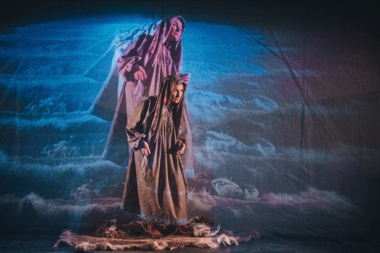 Андрей неминуемо становится главной фигурой этого человеческого многосплетения. Никогда не найти ему покоя и прощения, пусть даже в первооснове всего не он, а она – та самая проклятая и ненавистная война. Все попытки вернуть его к миру, в первую очередь, миру душевному, обречены изначально. Дуэт Ярославы Ульяновой (Настёна) и Андрея Майбурова, поддержанный включением сверхсюжетных Плакальщиц, – эмоциональный и нравственный камертон спектакля в целом. Юная, абсолютно иная Настена, чей облик противопоставлен всему этому миру на берегу Ангары, мечется в попытках сохранить то хрупкое чувство, в которое она искренне верит. И насколько жестко и жестоко эту хрупкость ломает самый близкий человек – вот тогда-то и появляются плакальщицы, чтобы до самого конца оплакивать ее, одновременно преследуя и мучая его.
