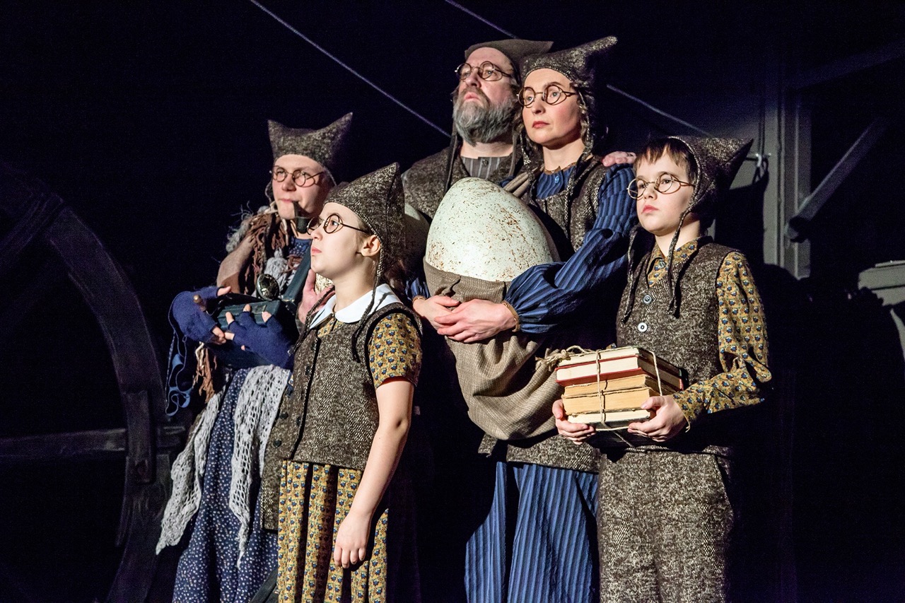 Актерская энергия альметьевской труппы не нуждается в дополнительных режиссерских «подпорках», скорее наоборот, Заббаров предложил им несколько вариантов остранения, чтобы не пустить спектакль по рельсам полного погружения. В повествовании появляются своеобразные новины, некогда популярные в различных регионах России в 1910-20 годах, героями которых становились реальные персонажи, но в сказочном обрамлении, – в частности, так решен эпизод о свадьбе коней. Нельзя не отметить работу хормейстера театра Марата Яхъяева в решении хоровых партий, которые органично вплетены в ткань спектакля и служат дополнительной характеристикой героев.